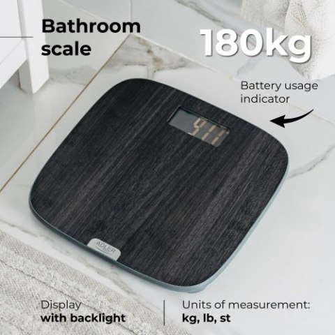 Waga łazienkowa Adler AD 8192 łączy nowoczesny design z zaawansowaną technologią, co czyni ją idealnym wyborem do każdego domu. Wyposażona w wysokiej jakości czujniki i solidną platformę, zapewnia dokładne pomiary i długą trwałość. Jej antypoślizgowa powierzchnia oraz efekt drewna nadają jej stylowy wygląd, który będzie doskonałym uzupełnieniem łazienki.