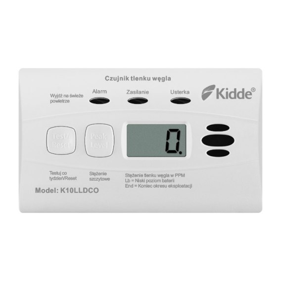 Czujnik czadu z wyświetlaczem i wbudowaną baterią K10DLLCO, gwarancja 10 lat, Kidde KIDDE