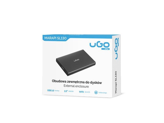 Zewnętrzna obudowa UGO Marapi SL130 przeznaczona jest do ochrony, przenoszenia i przechowywania danych na dyskach 2.5" HDD/SSD z interfejsem SATA o maksymalnej wysokości 9.5mm.