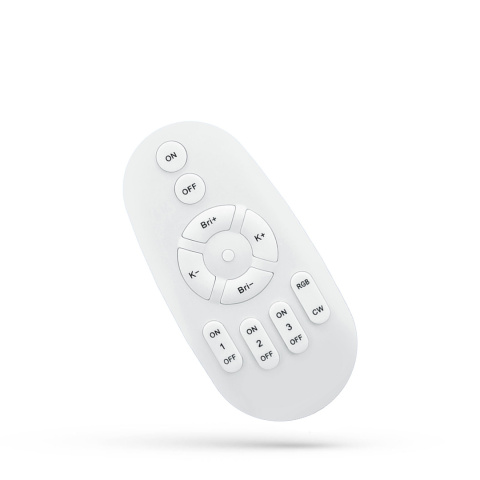 - Przycisk RGB zmienia kolory świecenia żarówek dla wybranej bieżącej grupy i analogicznie przycisk CW zmienia barwę świecenia. Pilot może obsłużyć maksymalnie 249 szt.