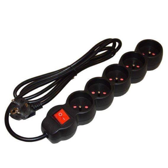 Przedłużacz 5 gniazd+wyłącznik 1,5m czarny