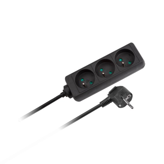 Przedłużacz czarny KEMOT 3 gniazda 3m bez przełącznika