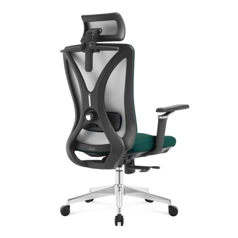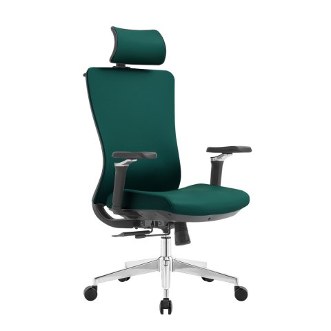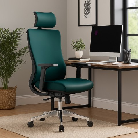 Biurowe, ergonomiczne krzesło obrotowe. Regulowana wysokość 116 - 139 cm, podłokietnik 5D, zagłówek 2D i wsparcie lędźwiowe. Kolor Zielony.