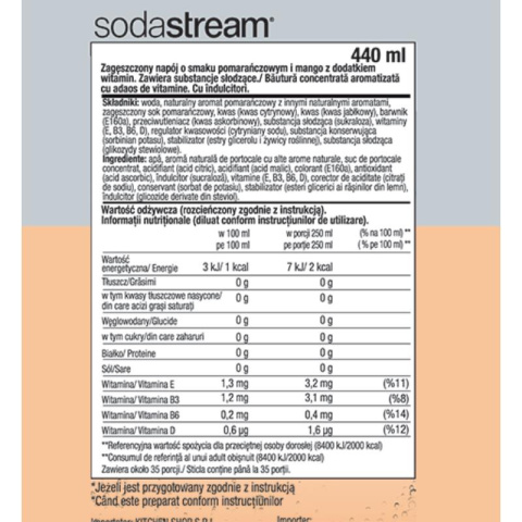 Syrop SodaStream o smaku Pomarańcza Mango, który wystarczy do przygotowania 35 butelek napoju.
