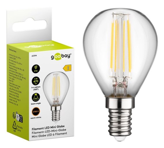 Tradycyjna żarówka LED-owa z tzw. "małym gwintem" E14 o mocy 4 watów. Dzięki